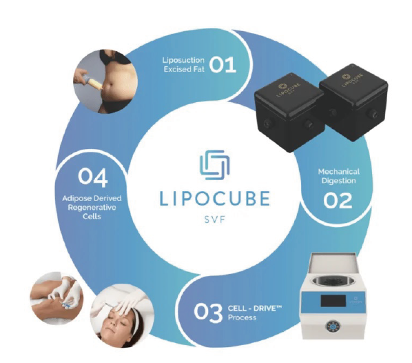 LIPO CUBE™(ライポキューブ)は、自身の脂肪組織から幹細胞を含む「SVF(間質血管分画)」を抽出するための先進的デバイスです。 特殊設計のナノブレードにより、脂肪組織を繊細に処理。分子構造を壊すことなく、高品質な細胞成分を抽出可能にしました。